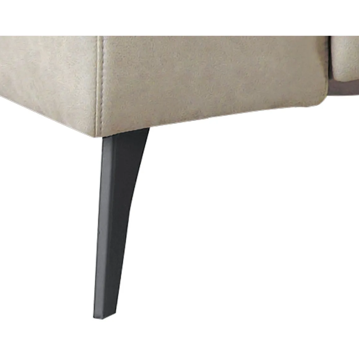 Hoekbank Piorino is uitgevoerd in microvezelstof in grijsbeige, wat de bank een warme en moderne uitstraling geeft. De stof is zacht en eenvoudig schoon te maken, dankzij de combinatie van geweven microvezels en fleece. De verfijnde stiksels in de zitting en rugleuning geven de bank extra karakter. De bank staat op strakke zwarte metalen poten, die zorgen voor een stabiele basis. De poten worden los meegeleverd en kunnen eenvoudig zelf worden gemonteerd.