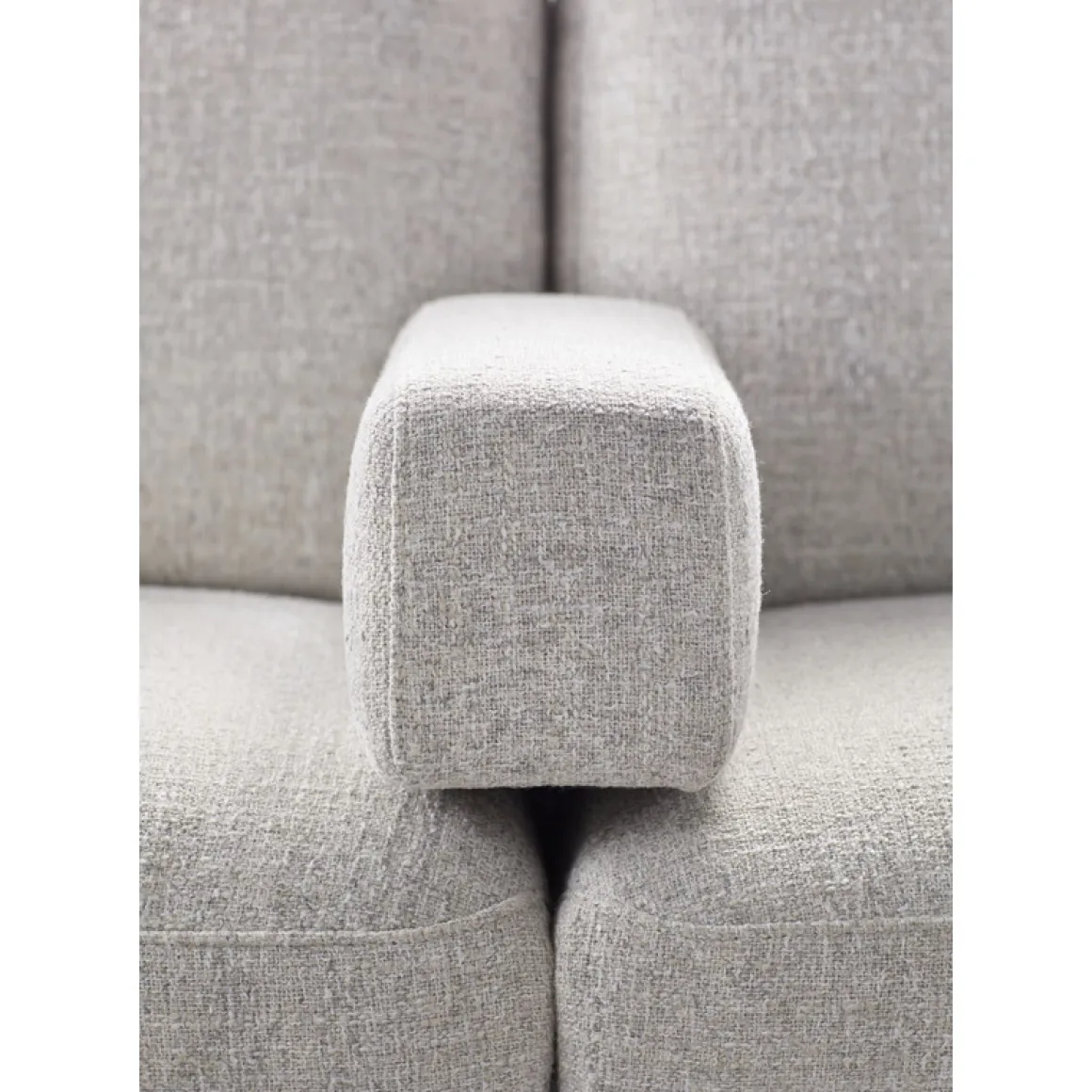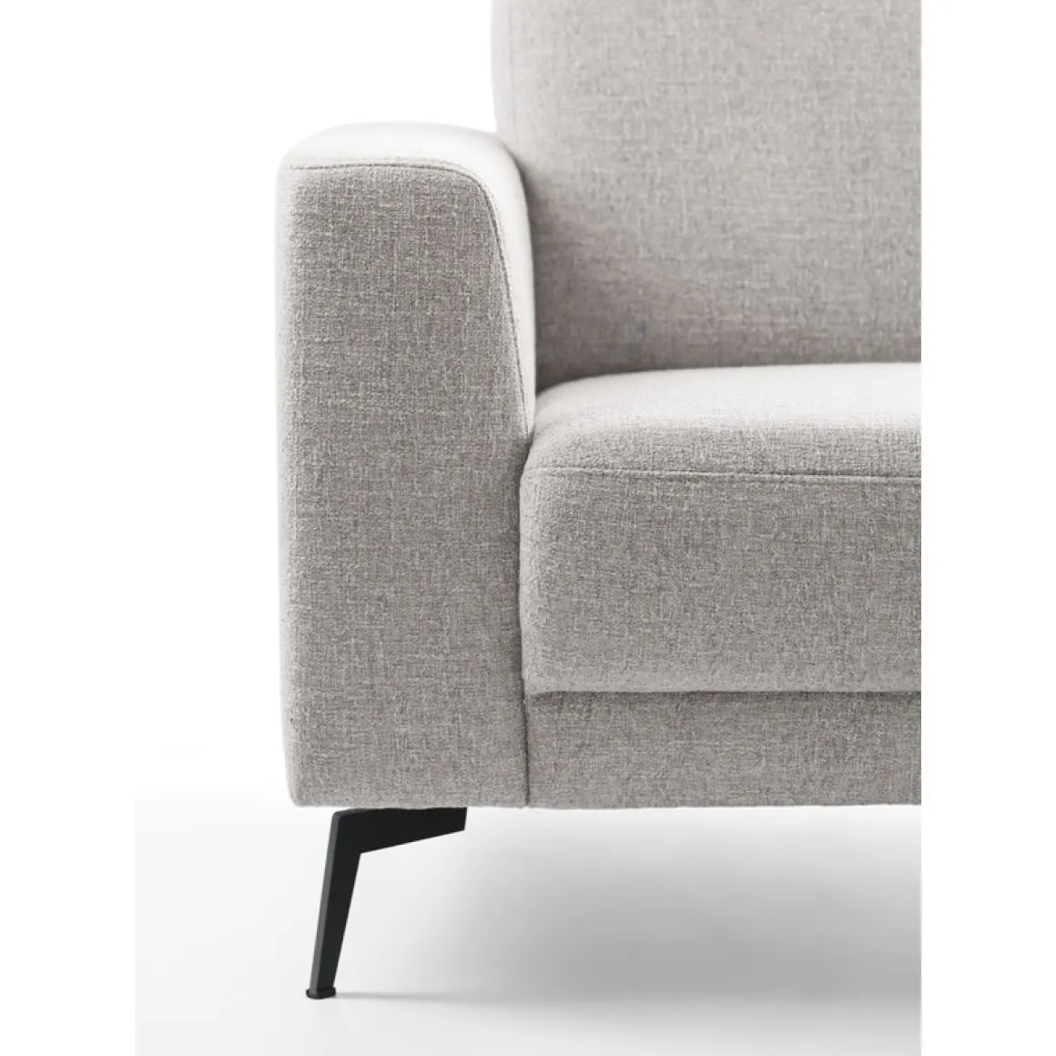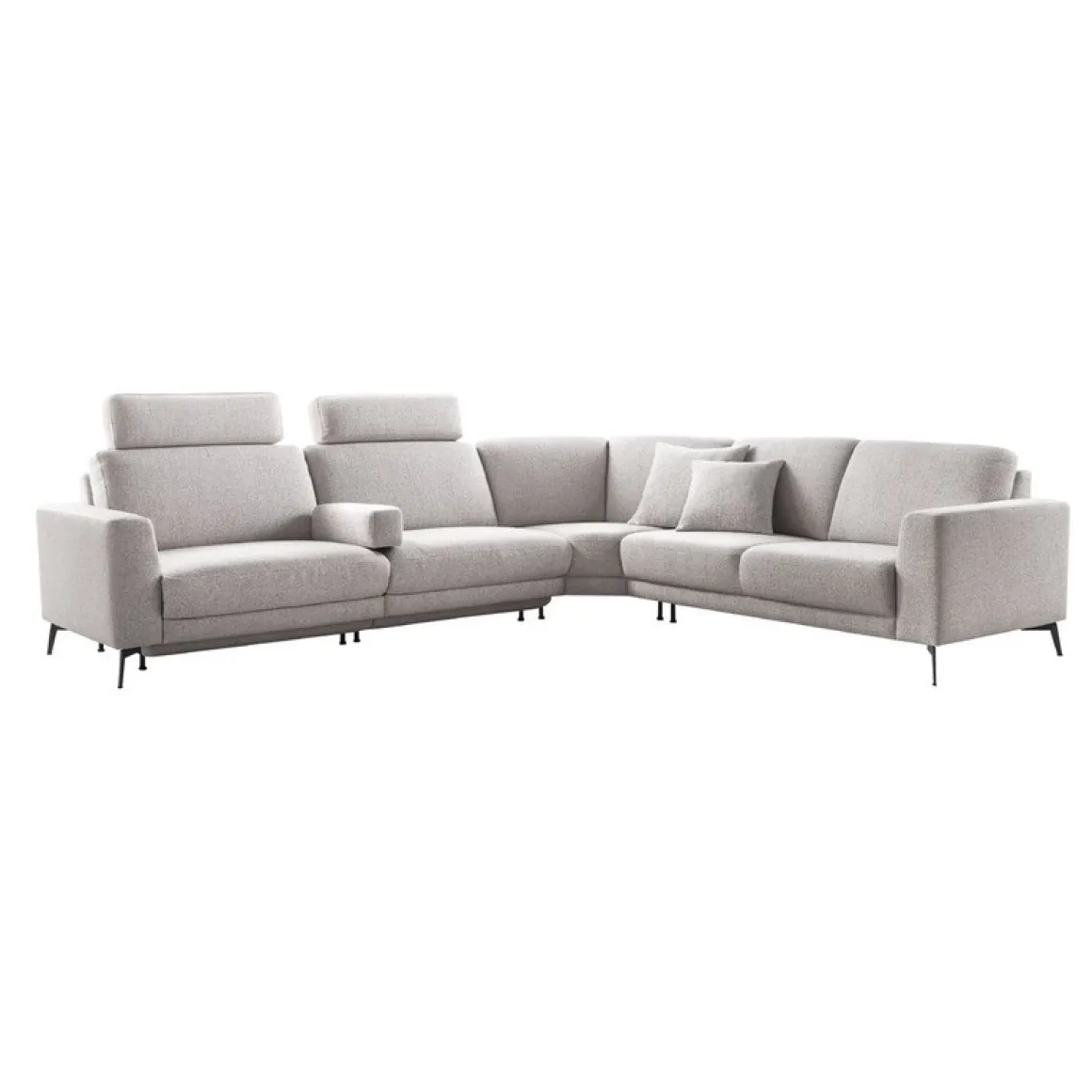 Moderne hoekbank Moscato in lichtgrijze weefstof