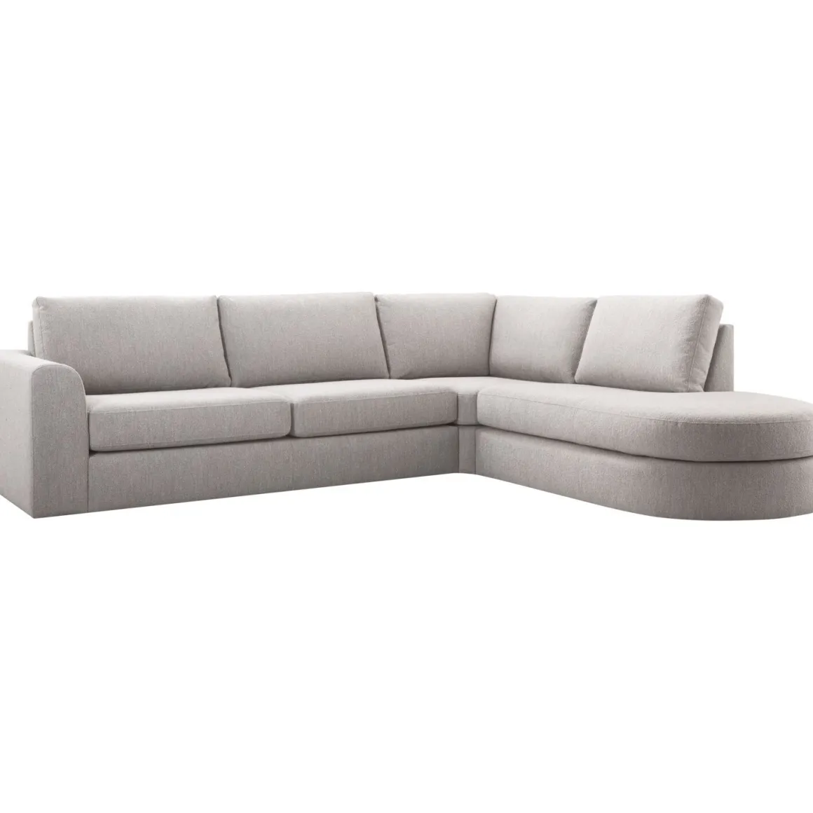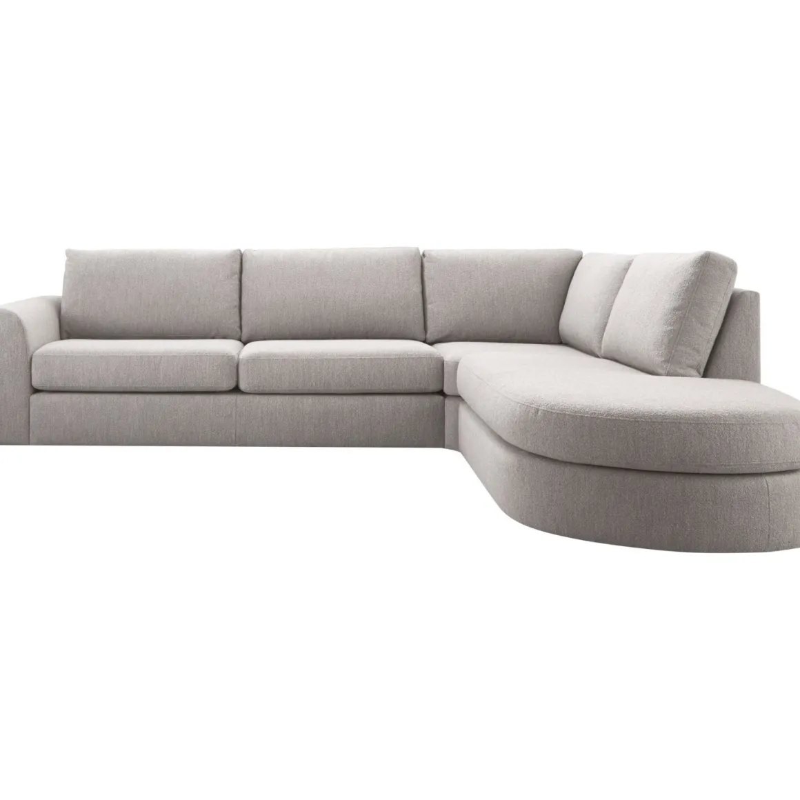 Grijze hoekbank Arnad met ronde vormen en boucléstof