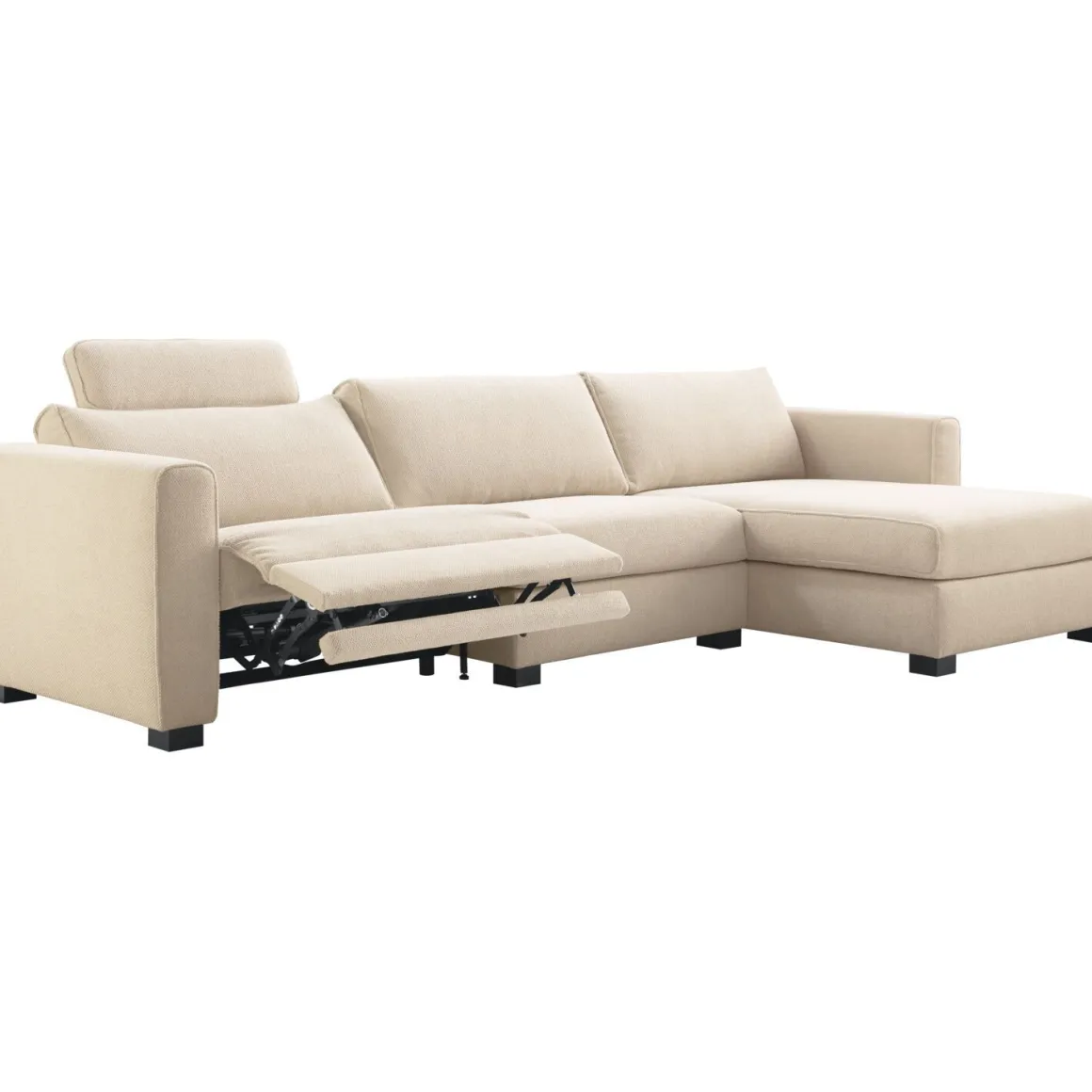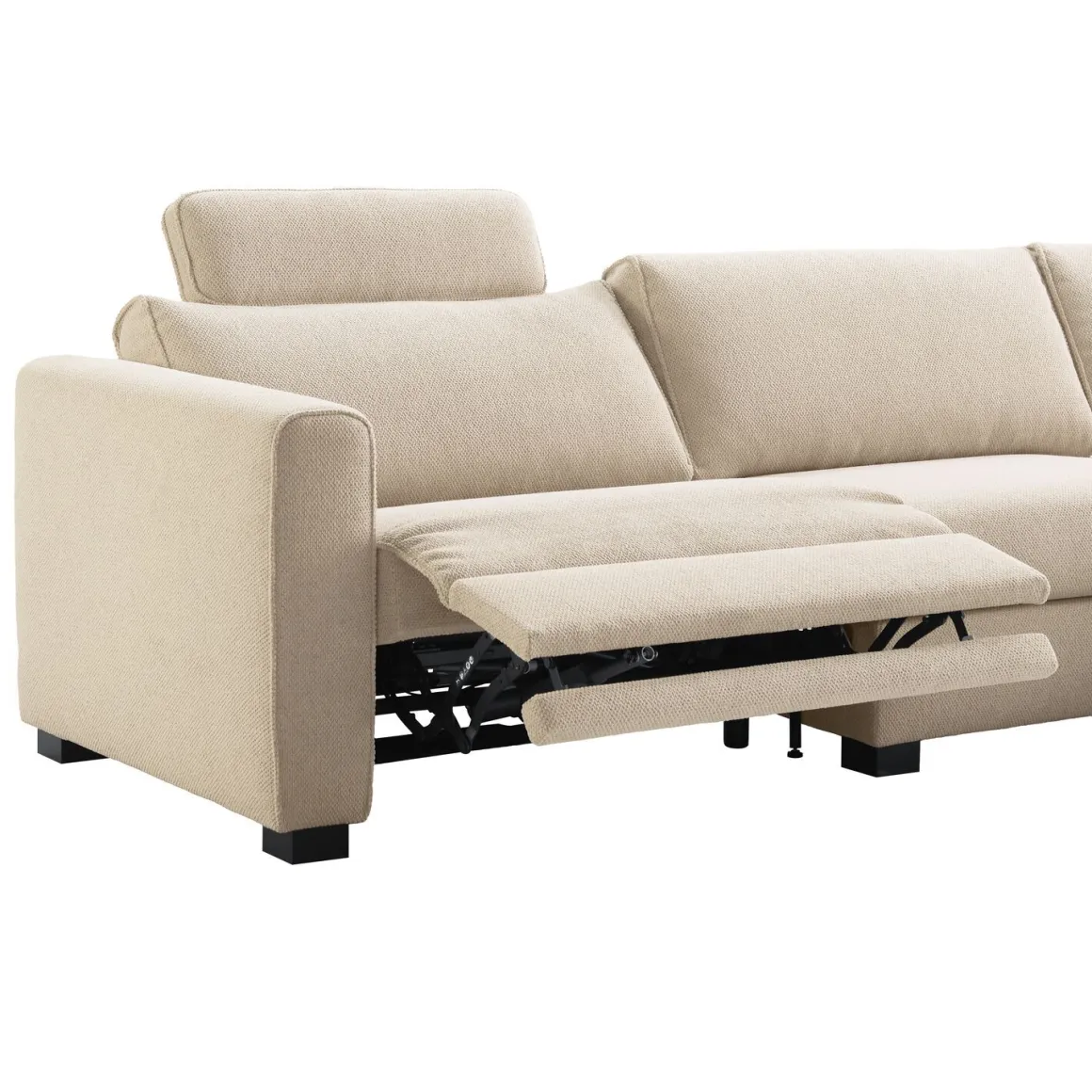 Hoekbank Licato in ecru weefstof met elektrische relaxfunctie