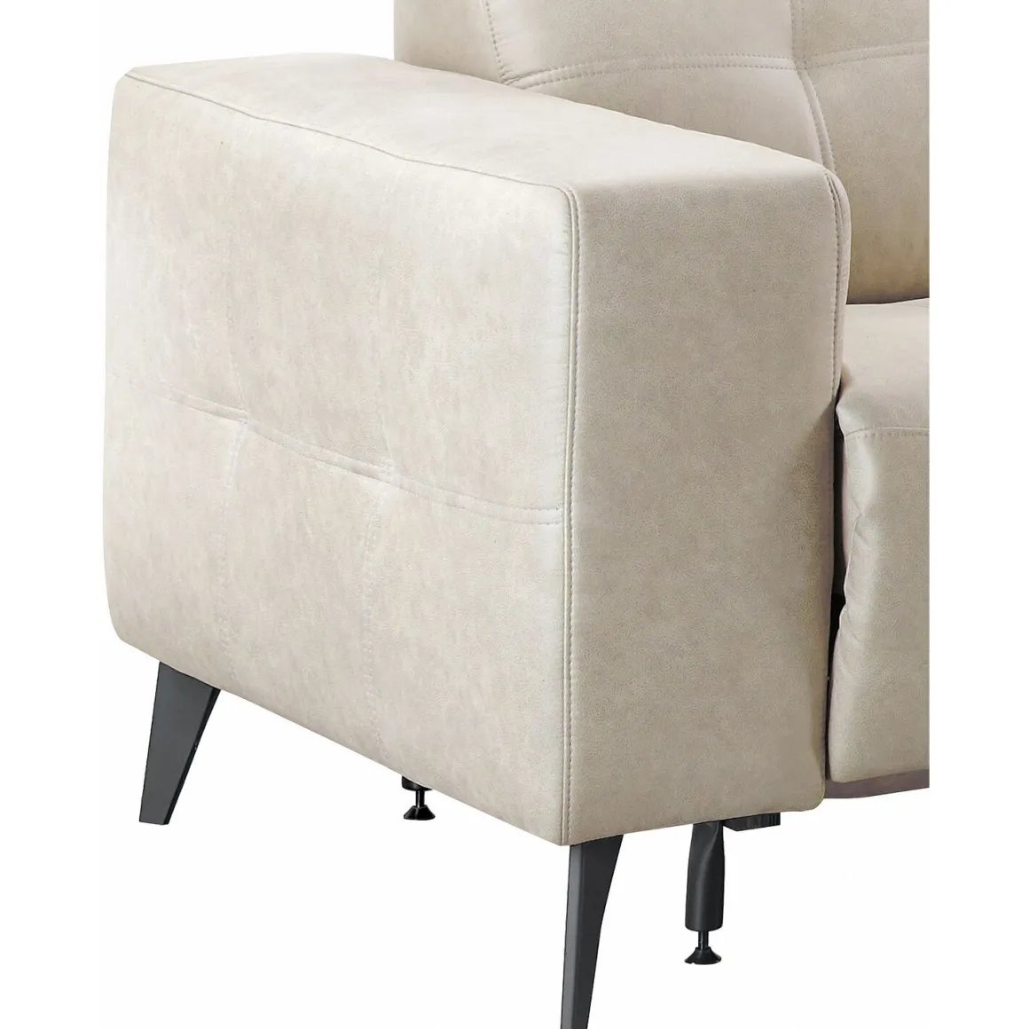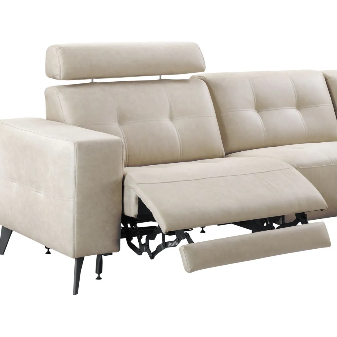 Hoekbank Piorino in grijsbeige microvezel met relaxfunctie en verfijnde stiksels - Met elektrische relaxfunctie voor rug, voet en hoofdsteun