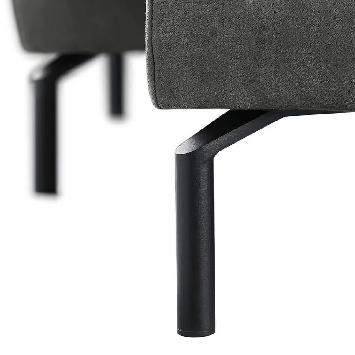 | Uitvoering | Longchair arm links + 2 zits zonder armen + hoekelement groot + 1 zits met eiland rechts uitgevoerd in microleder bull 67-antraciet met verstelbare arm A, verstelbare zitdiepte in 2 zits element, opbergruimte in 1 zits met eiland en chaise longue, bonellvering met een toplaag van HR-koudschuim in de zitting, polyetherschuim in de rug en zwarte metalen poten, type MF3 (15 cm). |