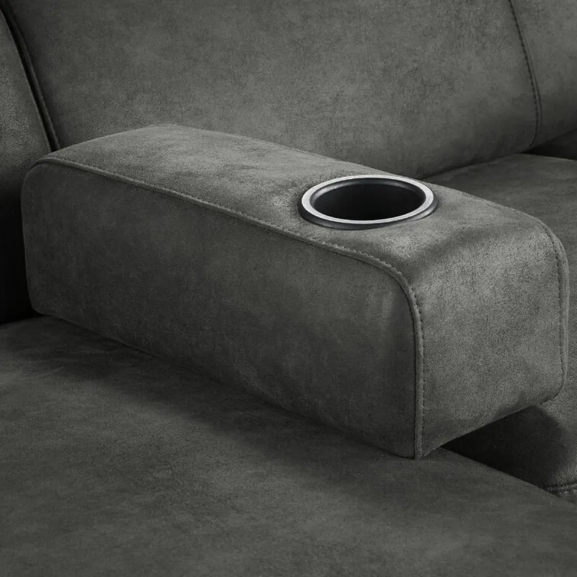 Donkergrijze hoekbank Tusari met verstelbare zitdiepte en opbergruimtes