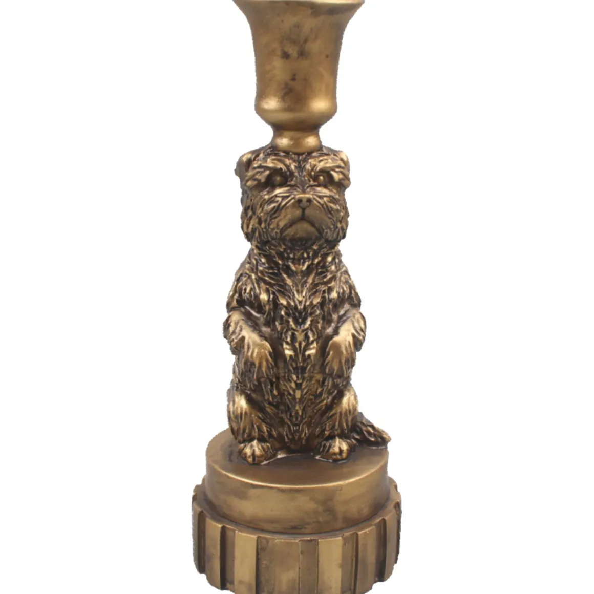 Stijlvolle kandelaar in kopertint met hondfiguur