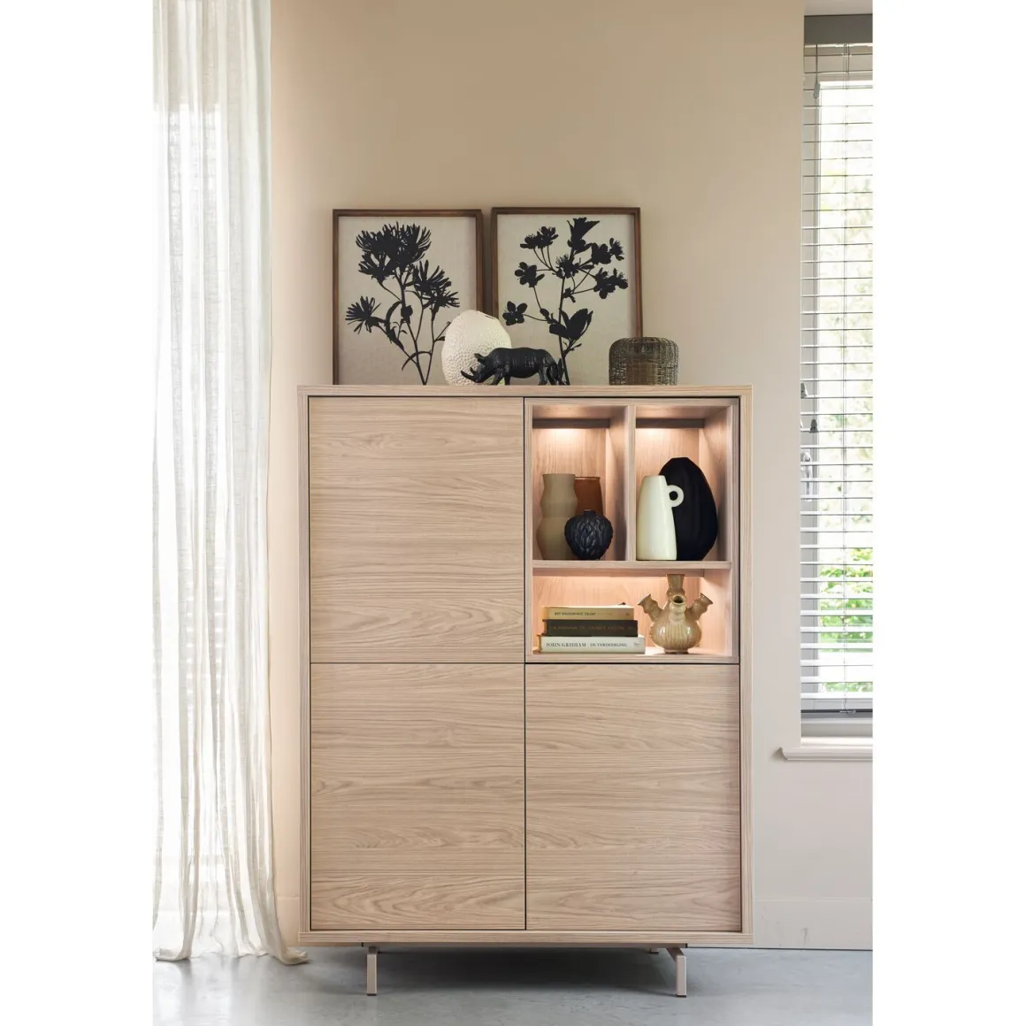 De Famosa serie is verkrijgbaar in twee kleurvarianten: Misty Oak en Stone Grey. Combineer deze opbergkast met andere meubelen uit de serie in Misty Oak voor een warm en licht geheel, of mix met elementen in Stone Grey voor een subtiel contrast met een moderne uitstraling. Dankzij de uniforme vormgeving laten beide kleuren zich moeiteloos combineren, zowel met elkaar als met verschillende zitmeubelen en woonaccessoires.