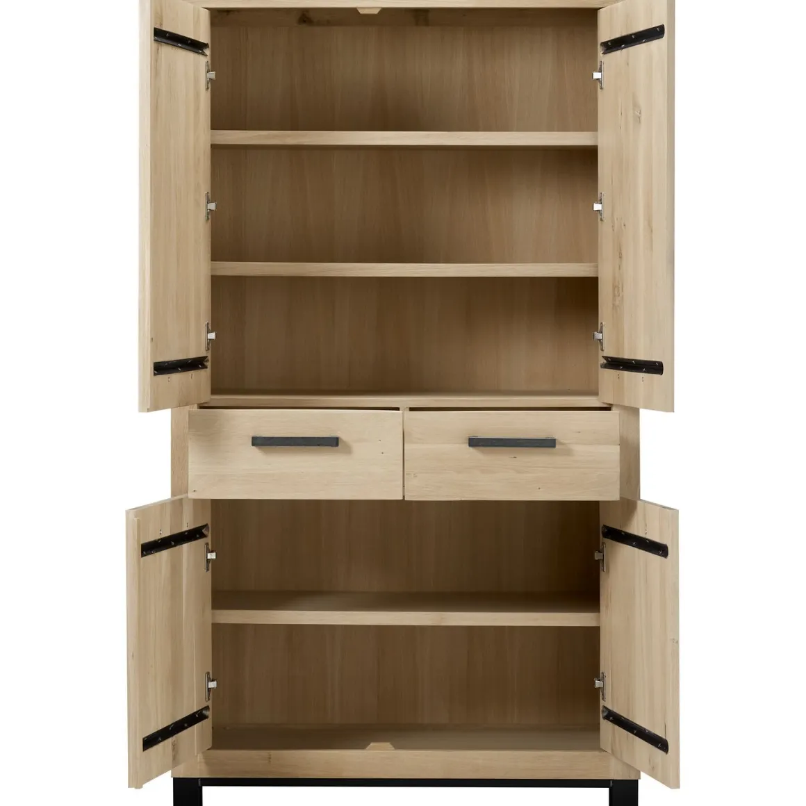 | Uitvoering | Uitgevoerd in grotendeels massief robuust eikenhout geborsteld in de kleur 44.5 ecofix, met 4 deuren en 2 laden. |