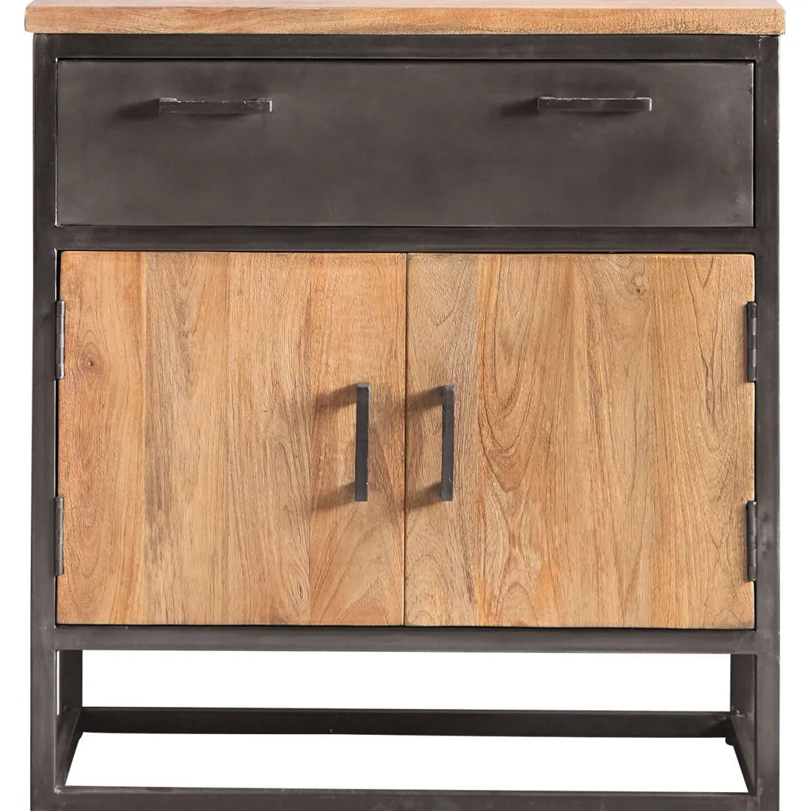 | Uitvoering | Uitgevoerd in mangohout natural met antique metalen frame, met 2 deuren en 1 lade. |