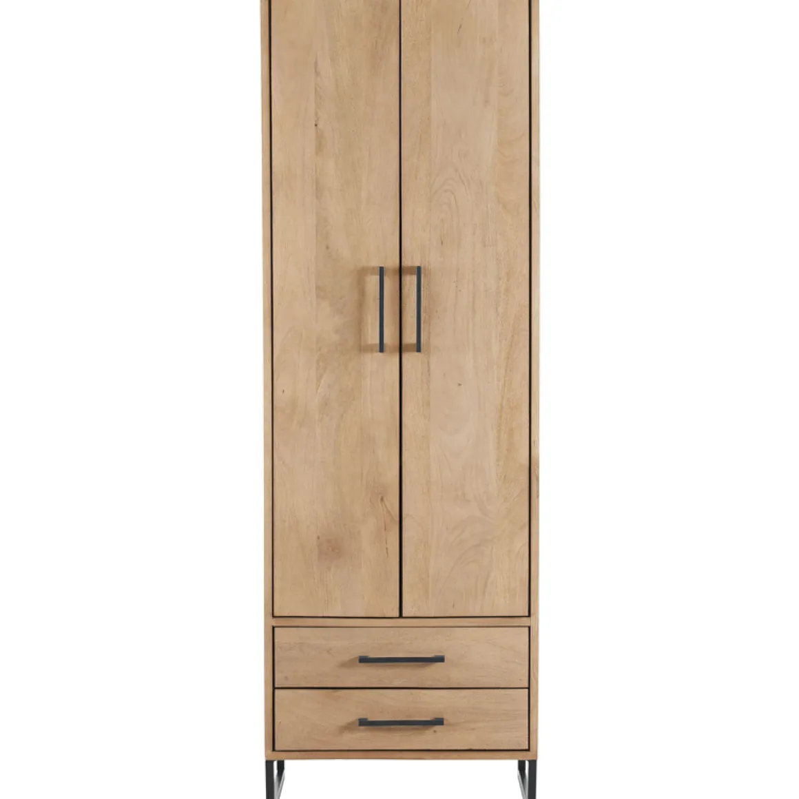 | Uitvoering | Uitgevoerd in gezandstraald mangohout in de kleur warm naturel en een zwart metalen frame, met 2 deuren en 2 laden. |