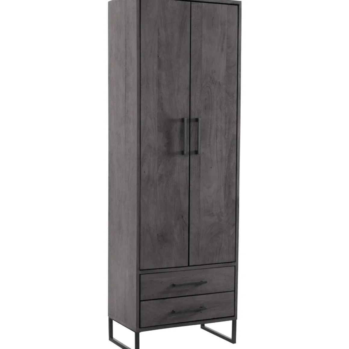 | Uitvoering | Uitgevoerd in gezandstraald mangohout in de kleur deep black en een zwart metalen frame, met 2 deuren en 2 laden. |