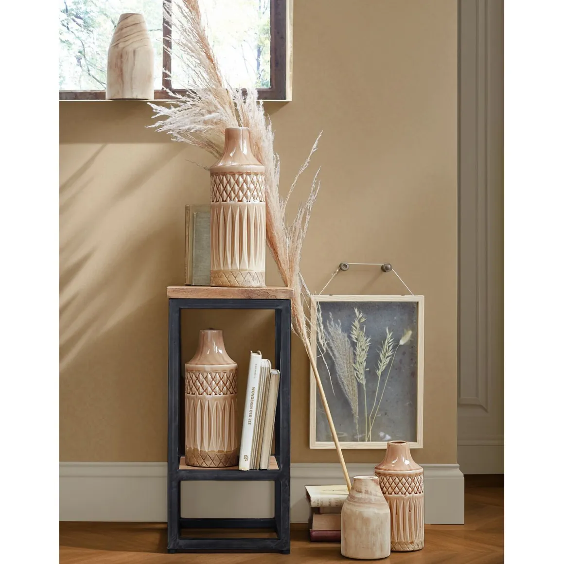 Plantentafel Mesola is een bijzettafel met een industriële uitstraling. De warme, lichtbruine kleur en het metalen frame zorgen voor een unieke sfeer. Het boven- en onderblad zijn gemaakt van massief mangohout. Dit hout heeft een natuurlijke uitstraling met verschillende lijnen, nerven en kleurschakeringen. Hierdoor is ieder meubel uniek.
