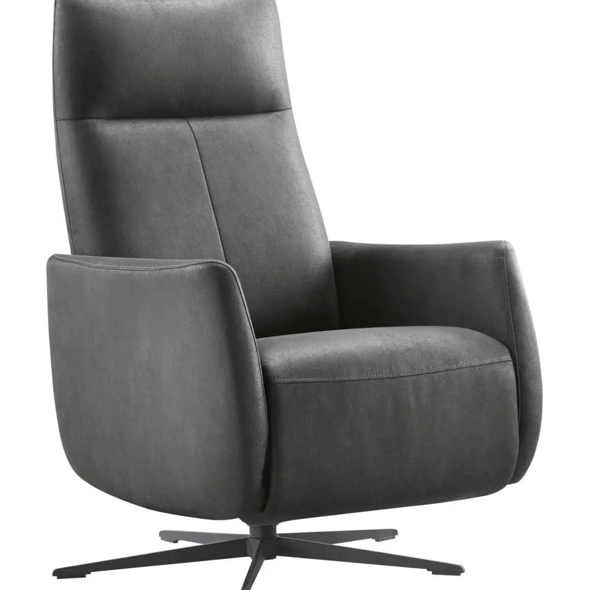Deze draai- en relaxfauteuil is uitgevoerd met een microleder in de kleur antraciet. Microleder is een duurzame, samengestelde bekleding van stof en leer die de luxe uitstraling van echt leer combineert met de voordelen van eenvoudig onderhoud. Het horizontale sierstiksel in de rugleuning geeft de fauteuil een moderne uitstraling, terwijl de elegante kleur zich gemakkelijk laat combineren met elke interieurstijl. De zwarte metalen 5-teens poot maakt de look compleet.