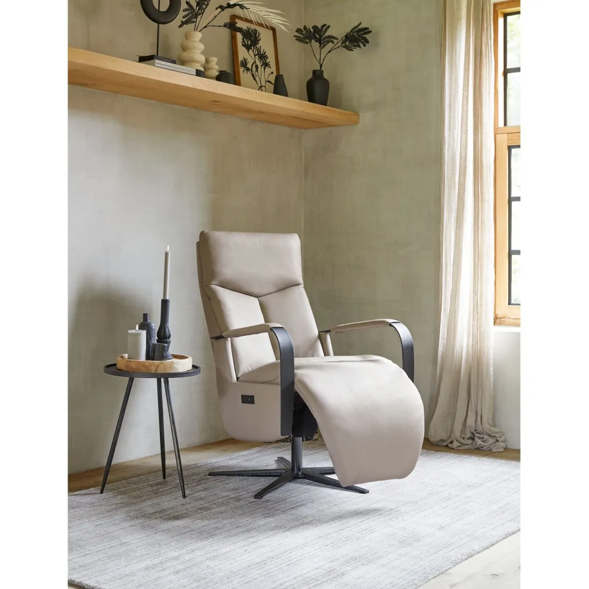 Relaxfauteuil Seduto in naturel beige leder, elektrisch verstelbaar