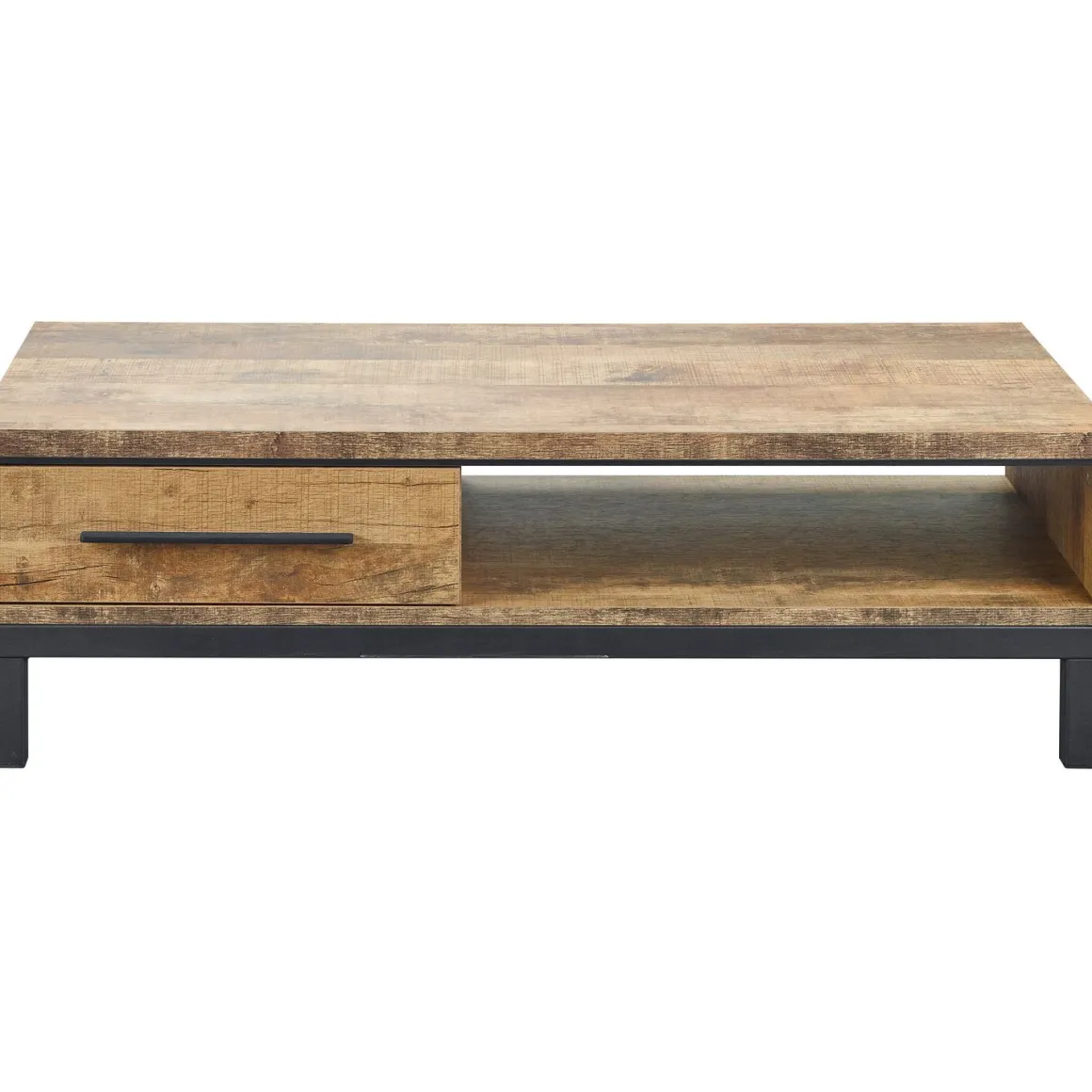 De combinatie van het zwart metalen frame en de kleur oriënt decor geeft de salontafel een robuust karakter. De salontafel is uitgevoerd in Lamulux. Lamulux is een materiaalontwikkeling gebaseerd op houtvezelplaat en melamine en wordt bij onze meubelen gebruikt als toplaag. Het is sterk, hard en minder gevoelig voor krassen. Door de aangebrachte houttekening en -structuur, heeft het dezelfde karakteristieke kenmerken van massief hout. Het ziet er niet alleen uit als echt hout, het voelt ook nog eens zo!