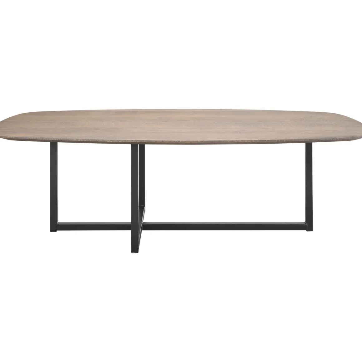 Deze prachtige salontafel uit onze tafelserie Tavolo heeft een eigentijds afgeschuind tafelblad in een Deens ovale vorm, vervaardigd uit hoogwaardig massief geborsteld eikenhout. Het blad is afgewerkt met een luxe NC-lak in een stijlvolle grijsbruine tint. Het zwart metalen onderstel bestaat uit twee ongelijk geplaatste U-poten, die eenvoudig zelf gemonteerd kunnen worden en zorgen voor een optimale stabiliteit.