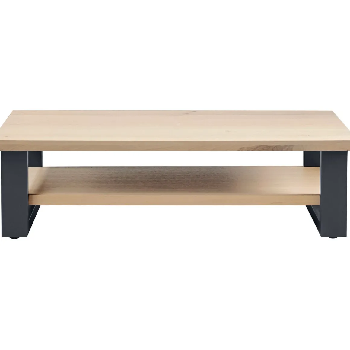 Deze industriële salontafel Verato is gemaakt van eikenhout met een metalen frame. Eikenhout kenmerkt zich door de fijne nerf, vlamtekening en de wisselende kleurschakering. Elke boom heeft een eigen uitstraling door de groei en weersinvloeden. Structuur, nerfschakering, windbarstjes, haarscheurtjes en de aanwezigheid van grote en kleine knoesten getuigen van jarenlange groei en maken het hout van de boom authentiek.