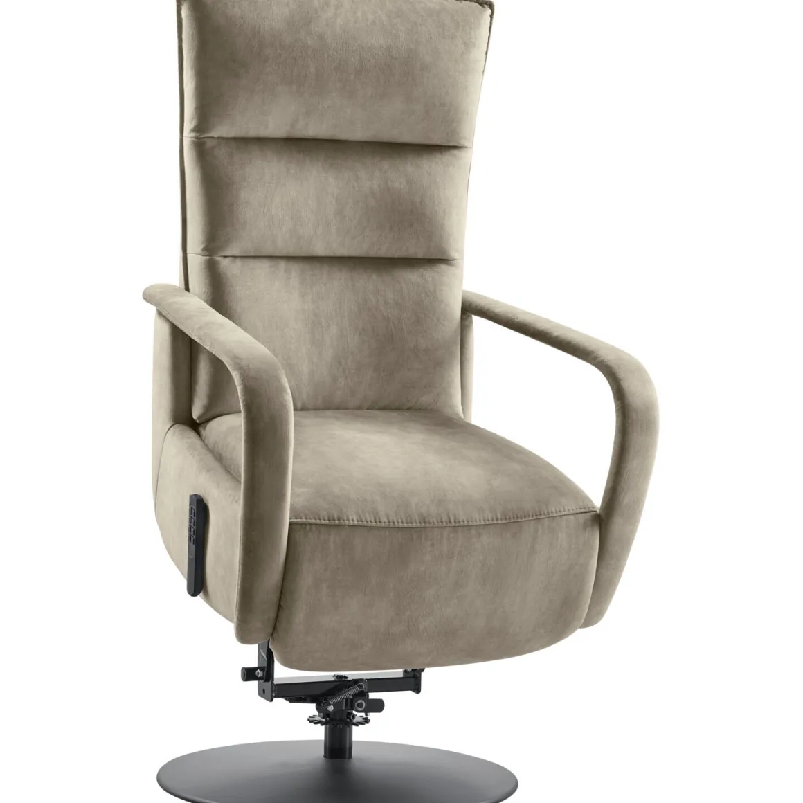 | Uitvoering | Uitgevoerd met rug A (horizontale banen) in stof adore 84-clay met arm 1, zitdiepte +3cm, elektrisch verstelbaar (2M) inclusief sta op hulp, elektrische verstelbare hoofdsteun, draadloze bediening met magneet, pocketvering met een dubbele toplaag van HR-koudschuim en traagschuim in de zitting, HR-koudschuim in de rug en schijfvoet (TMF1) zwart. |