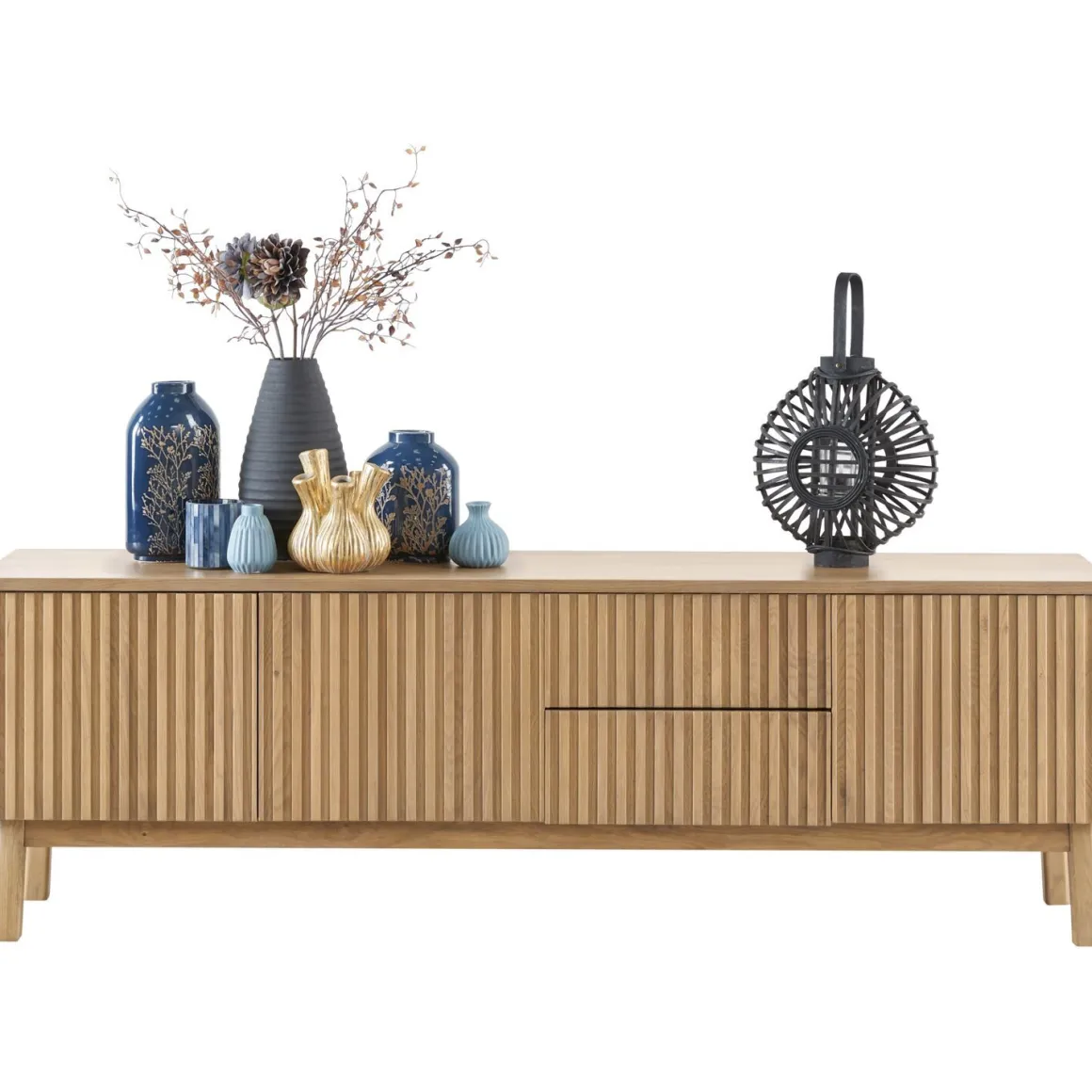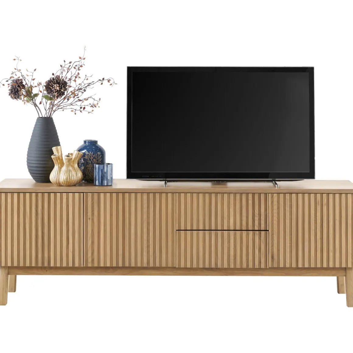 Het TV-meubel Arrosto uit de gelijknamige woonserie combineert vakmanschap met een verfijnde, eigentijdse stijl. Gemaakt van hoogwaardig eikenhout, straalt dit meubel een tijdloze charme uit die perfect past in eigentijdse interieurs. Verkrijgbaar in de stijlvolle kleuren Light- of Dark Roast, is deze een echte blikvanger in elke ruimte. De verfijnde latjes aan de buitenkant geven het TV-meubel deze een subtiele knipoog naar Scandinavisch design, waardoor deze zowel elegant als functioneel is.