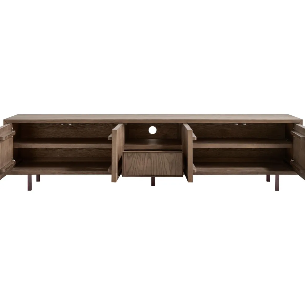 Het tv-meubel maakt deel uit van de woonserie Calvo. Combineer het met de bijpassende opbergkasten, dressoirs en salontafels voor een rustig en harmonieus geheel. De warme houtkleur combineert prachtig met zachte stoffen en lichte tinten, maar vormt ook een stijlvol contrast met donkere accenten.