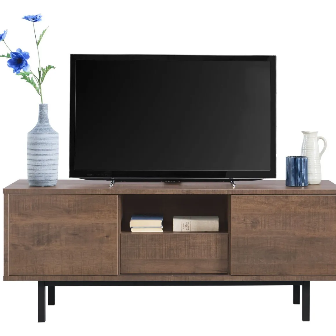 Met een hoogte van 59 cm en een breedte van 148 cm biedt het tv-meubel voldoende opbergruimte voor je media-apparatuur. Achter de schuifdeuren zitten legplanken, zodat je alles netjes kunt opbergen. Daarnaast is de lade voorzien van een softclose systeem voor geruisloos gebruiksgemak. Het tv-meubel wordt gemonteerd geleverd, zodat je alleen de poten hoeft te bevestigen.