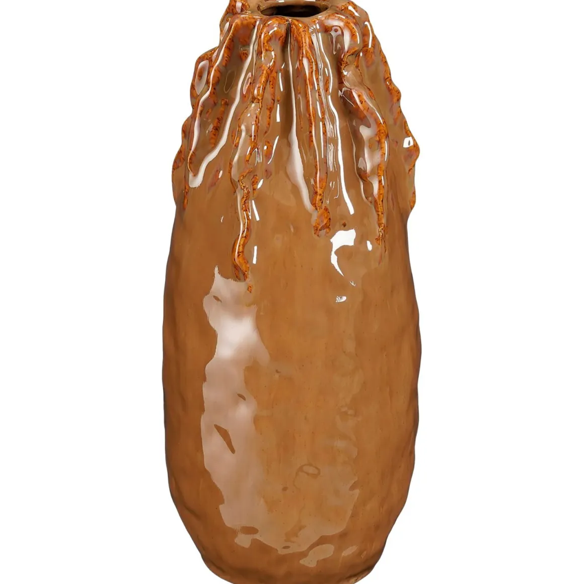 Deze bruine vaas brengt een rustige, natuurlijke sfeer in je interieur. Zijn eenvoudige en elegante vorm trekt meteen de aandacht, zowel met als zonder bloemen. Plaats hem op een eettafel, salontafel of dressoir en geef je woonruimte een subtiel, stijlvol en gezellig accent.