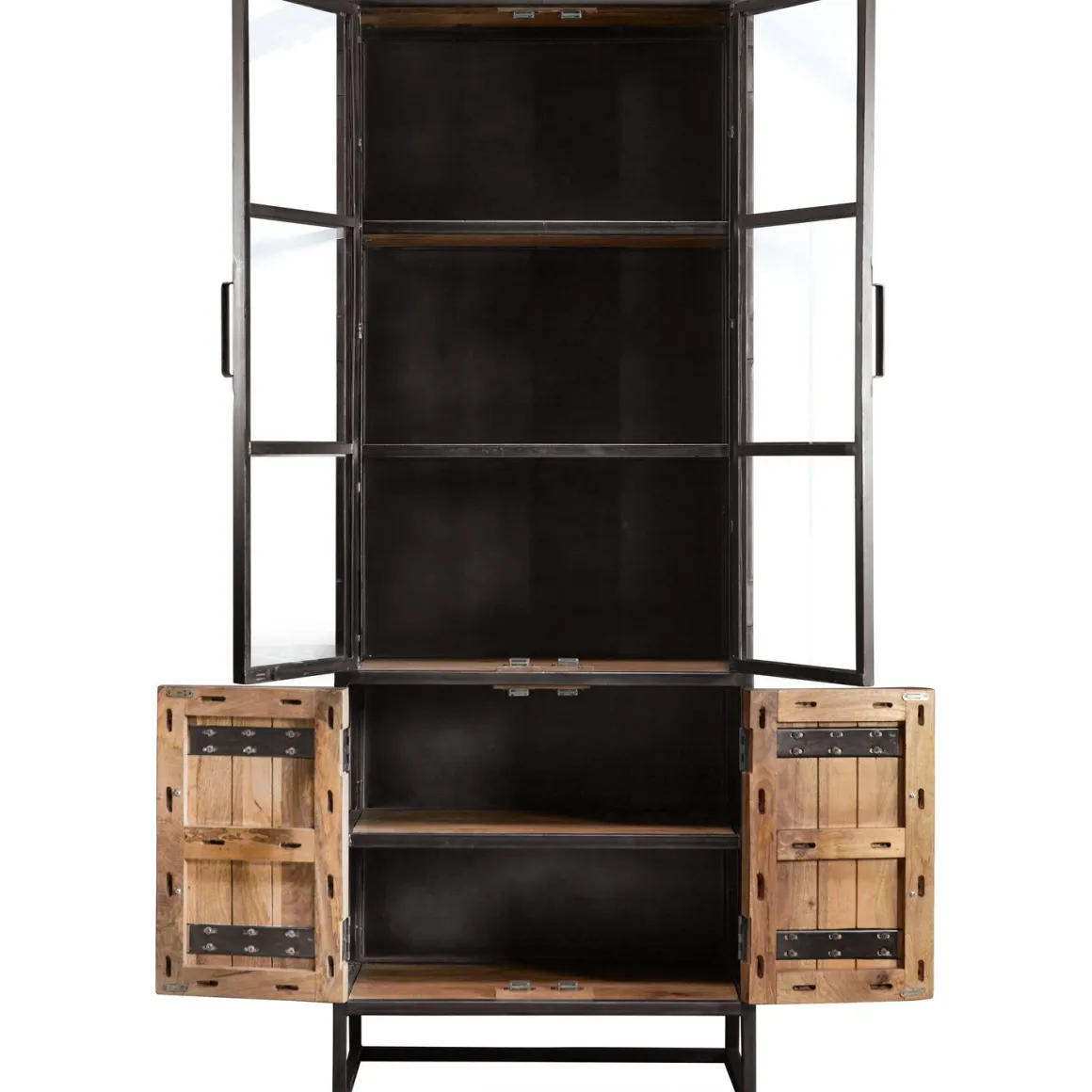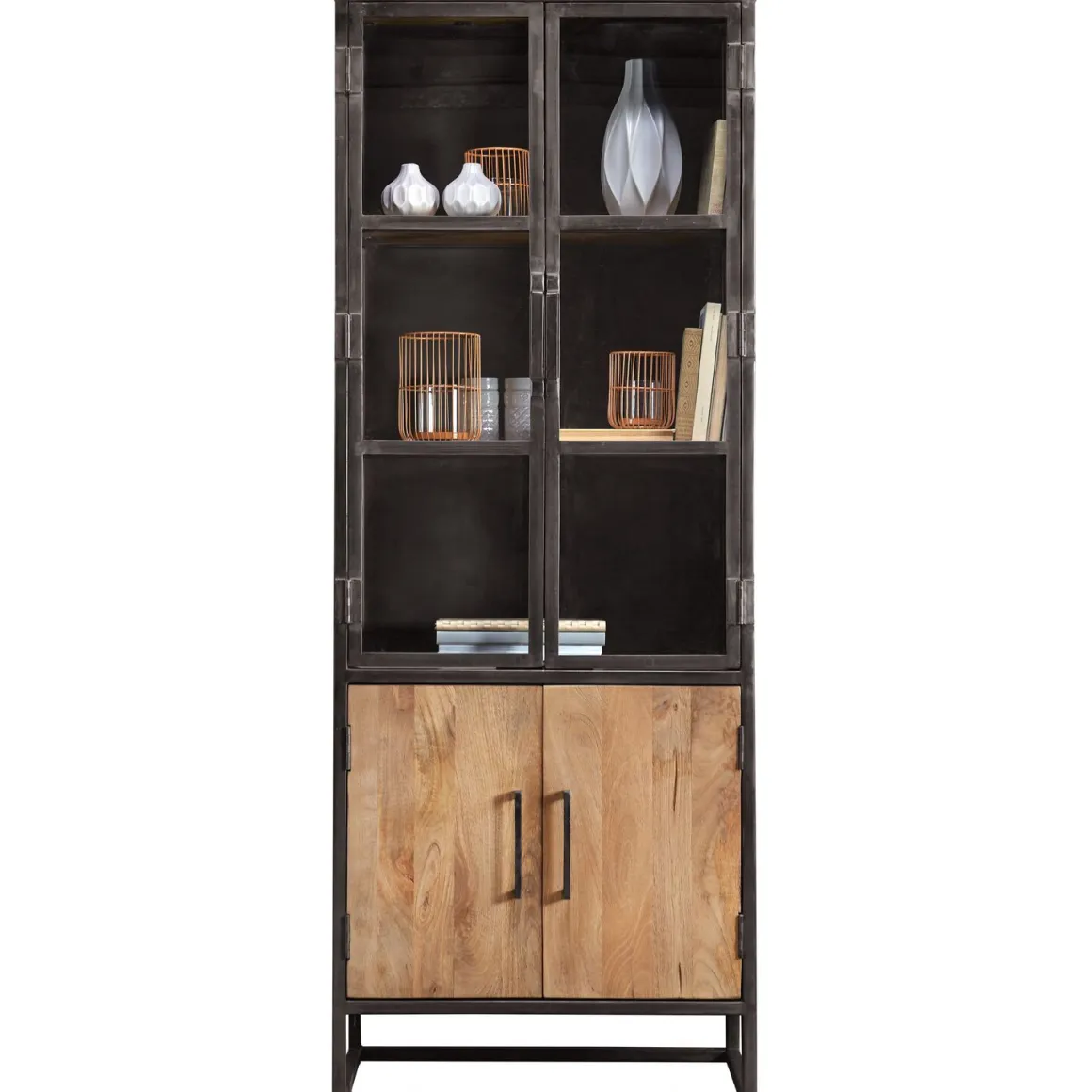 | Uitvoering | Uitgevoerd in mangohout natural met antique metalen frame, met 2 deuren en 2 glasdeuren. |