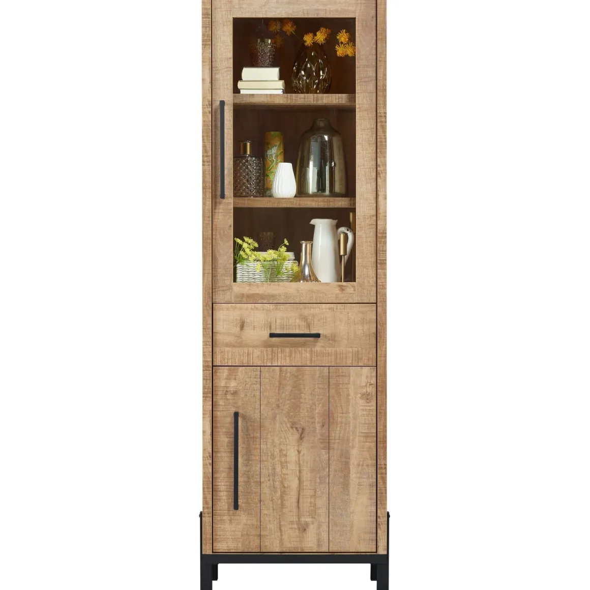 Stoere vitrinekast Ricardi met mango houtdecor