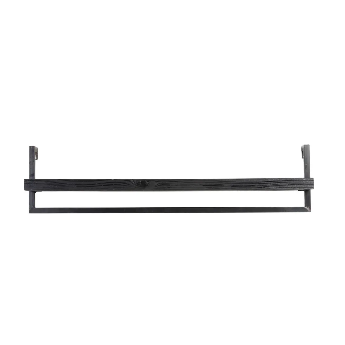 Model Pardal bestaat uit een serie stoere zwarte wandplanken gemaakt van hout en voorzien van een zwart metalen frame.